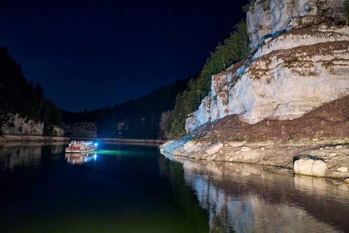 Was gibt es Schöneres als eine Dinner-Kreuzfahrt bei Kerzenschein (Dauer: ca. 3 Stunden) an Bord der Saut du Doubs Boats! Bei Nacht werden Sie durch die Beleuchtung der Klippen und den Besuch der Wasserfälle im Licht der Laternen die Magie und den Zauber dieses außergewöhnlichen Ortes spüren.